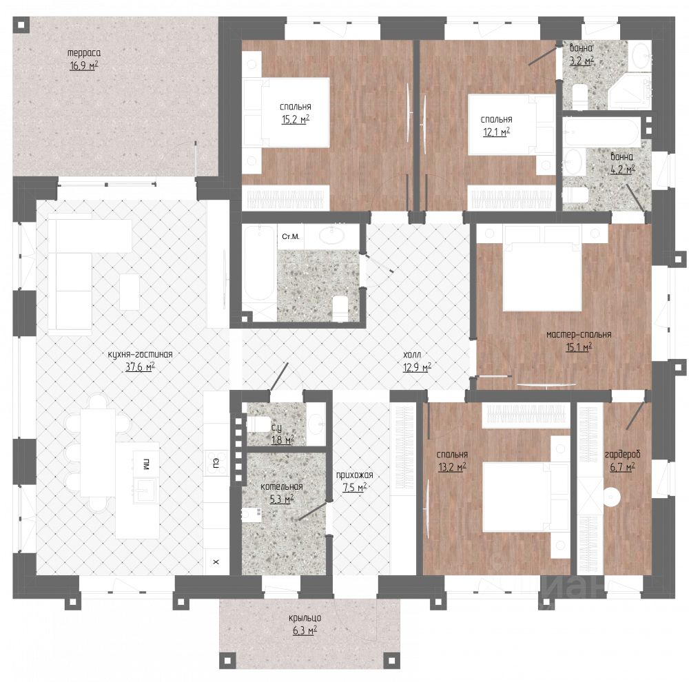 Общая площадь дома 207,15 м2