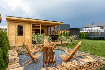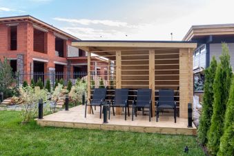 Кровля дома из металлочерепицы, цвет серый RAL 7024. Вся стропильная система обработана огне-биозащитным составом.