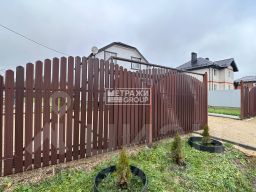 В охраняемом поселке, на возвышенности продается отличный участок с домом и хозпостройками. Участок 12 соток, прямоугольной формы, категория: Земли Населенных Пунктов, вид разрешенного использования: для Личного Подсобного Хозяйства. На участок завезли, несколько камазов грунта, выровняли и подняли, что сделало его, всегда сухим, смонтирован дренаж, также есть мангальное место, парковка и хозблок из двух комнат.