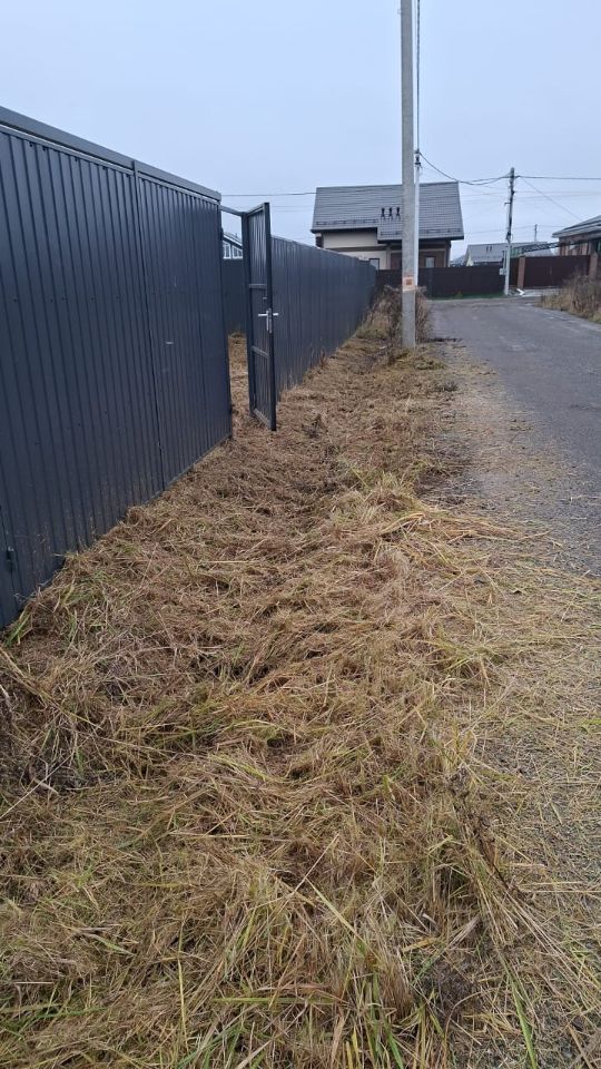 Зарослей и деревьев на участке нет. Косили измельчителем, так что кучи старой травы на участке так же нет.