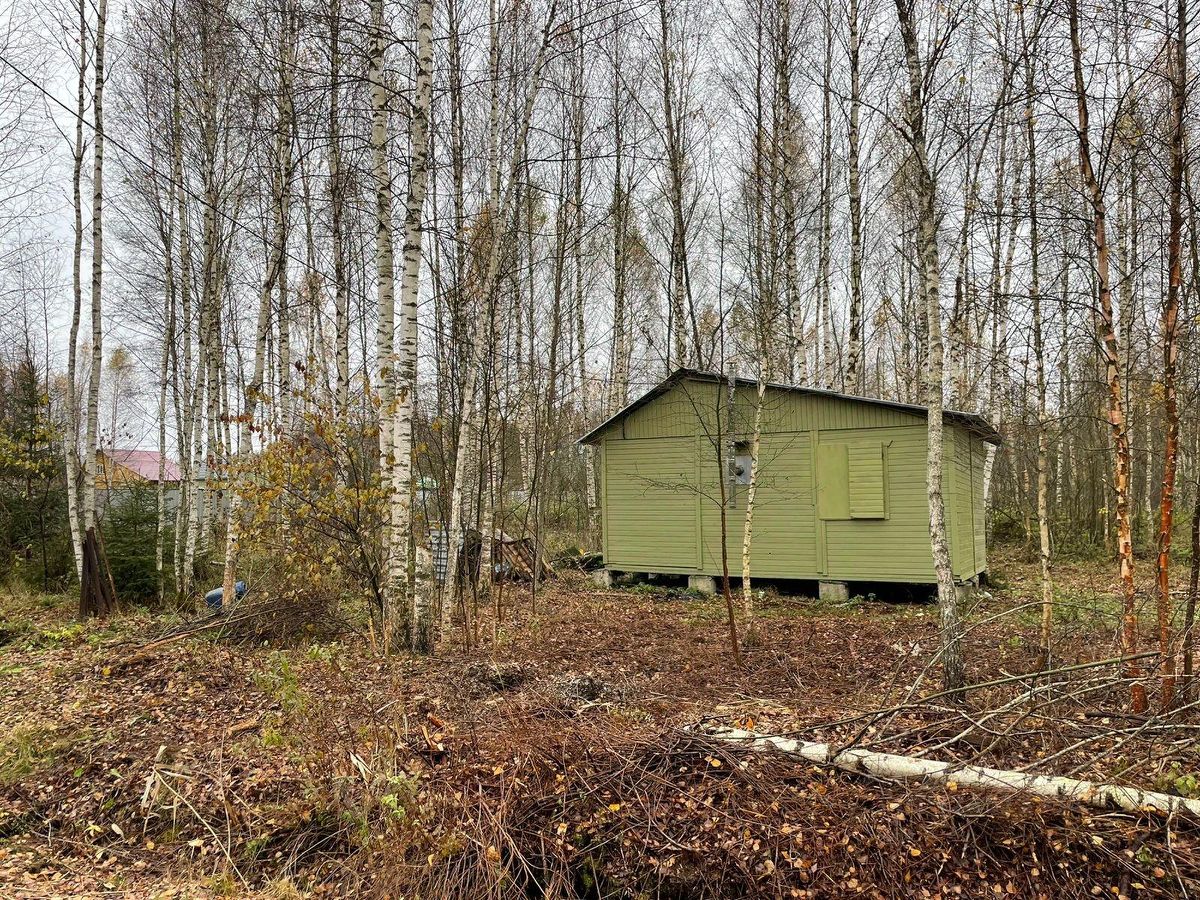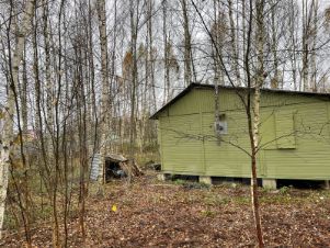 В домике диван, кресло, стол, шкаф, печка. Прихожая, она же кухня и комната.