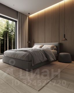 • На первом этаже гостиная, столовая, кухня единым пространством, 2 спальни, каждая с гардеробной и ванной комнатой. Спальня на втором этаже — с панорамным остеклением, видом на лес и выходом на балкон: ваше личное место для уединения среди природы.