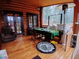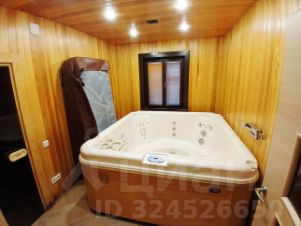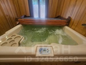 В бане (80 кв.м.) обустроена комната отдыха, душевая с подвесным ведром, джакузи SPA Hot Tubs, парная с дровяной печью Harvia.