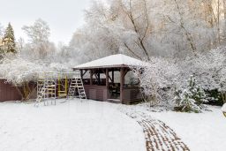 Земельный участок ровной прямоугольной формы 12 соток, плюс есть доп. 4 соток, вдоль забора и на участке растут ели. На участке есть беседка, мангальная зона. Гараж на одну машину и навес на 4 машины.