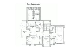 2 этаж: холл, 2 спальни с выходом на балкон, с гардеробными (19 и 18,6 кв.м), с/у, мастер-спальня, гардеробная, с/у; кабинет, комната для персонала