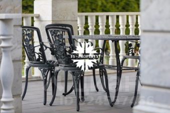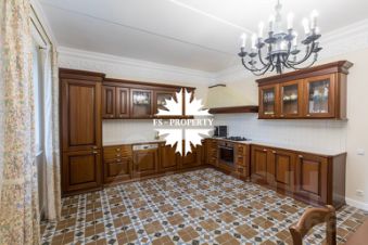 На просторном участке 28 соток расположилась элегантная усадьба площадью 640 квадратных метров с черепичной крышей и изысканной мраморной облицовкой. Дом завораживает своим особенным шармом: просторная гостиная с камином из белого камня и выходом на большую террасу приглашает проводить незабываемые семейные вечера в атмосфере уюта и тепла. Кухня — мечта любого гурмана: изготовленная на заказ из премиальных материалов и оснащённая встроенной техникой Bosch премиум-класса.