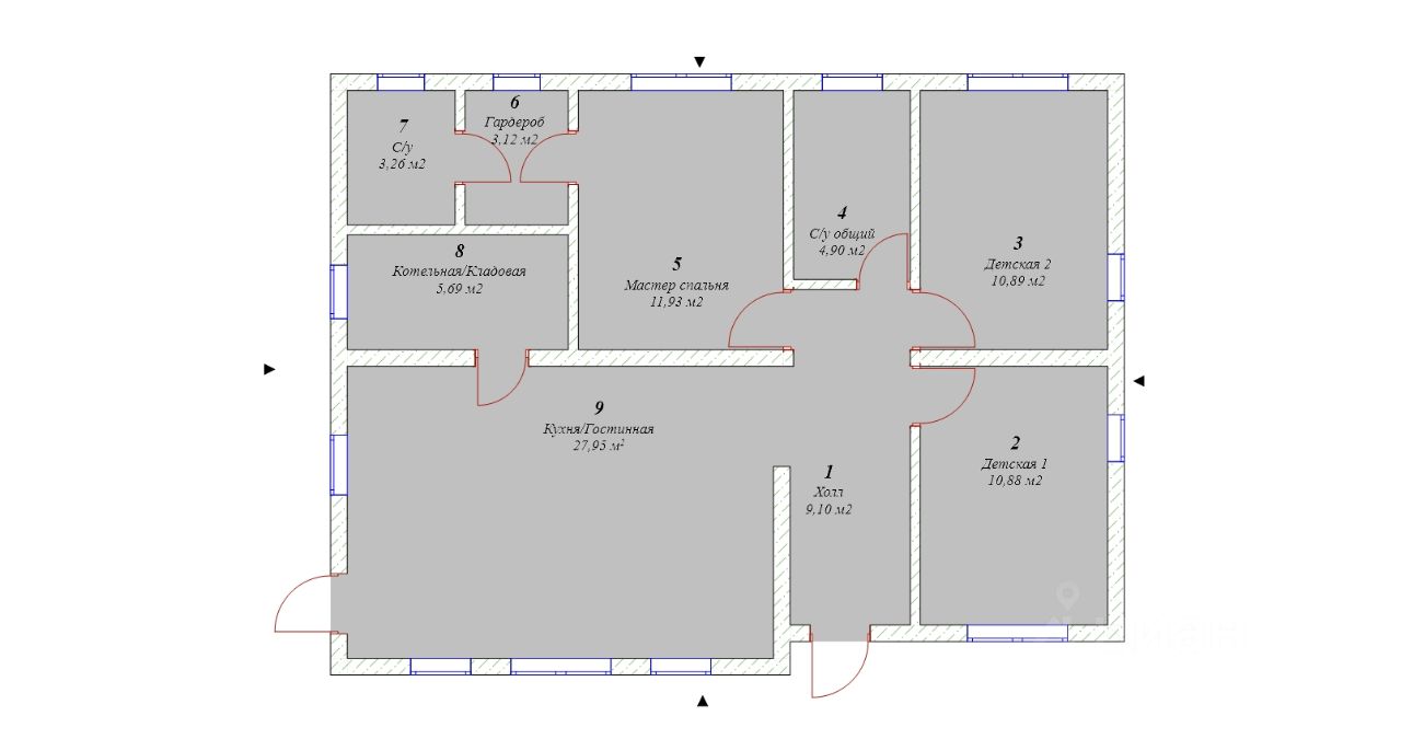 Три спальни одна из них мастер-спальня со своим гардеробом и своим санузлом, просторный общий санузел, котельная, кухонная кладовая и большая кухня гостиная, много больших окон, очень светлый, два входа.