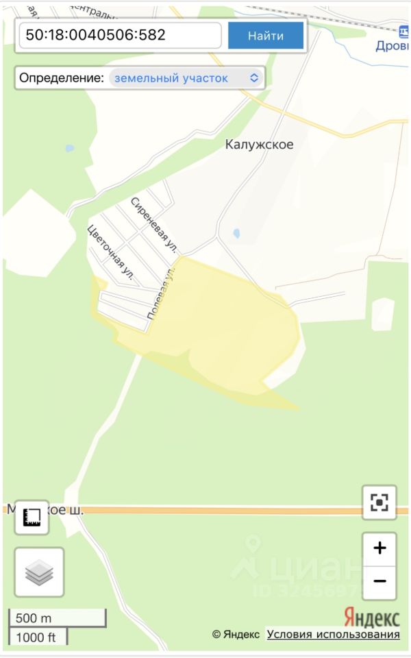 Хороший ровный участок. Примыкает к СНТ Вишенка, рядом с деревней Калужское.