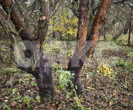 Участок 12 соток. Небольшой сад с плодовыми деревьями. За участком есть место под огород. Далее поле и лес.