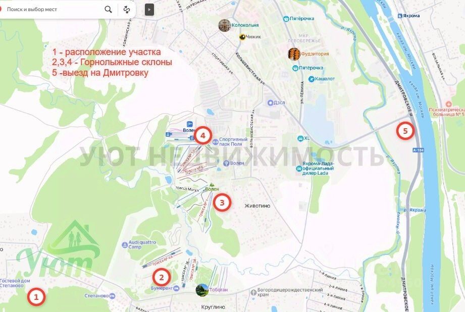 Продаётся участок 21 сотка с подведёнными коммуникациями у горнолыжного курорта "Яхрома"