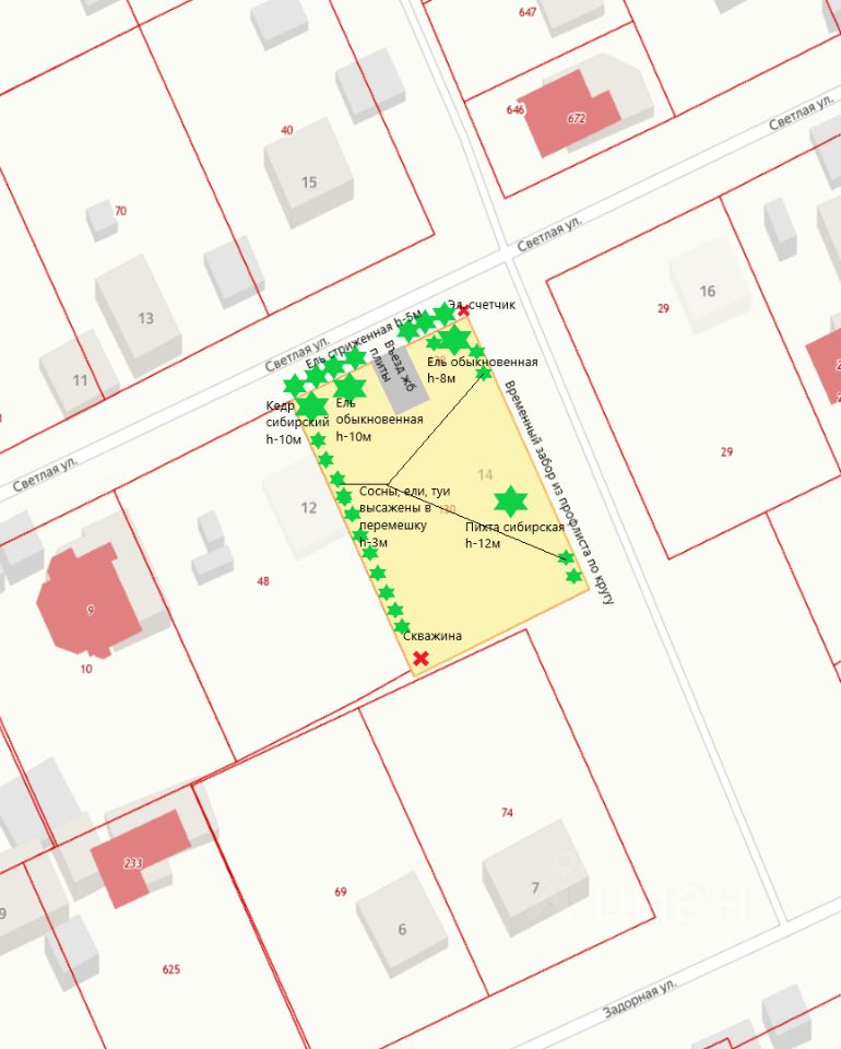 Продажа от собственника. В собственности 10 лет. Участок прямоугольной формы, есть скважина, подведено электричество 15 кв. На участке посажены деревья: Кедр сибирский высотой 10м. Пихта сибирская высотой 12+ м. Ель обыкновенная высота 10м. также 8 м. и много от 3х до 6 ти метров, а также туи и сирень. Участок огорожен временным забором из профлиста. Отличный участок для постройки дома, с двух сторон дорога поэтому есть вариант въезда с двух сторон. Немалый плюс это Московская прописка. Разумный торг.