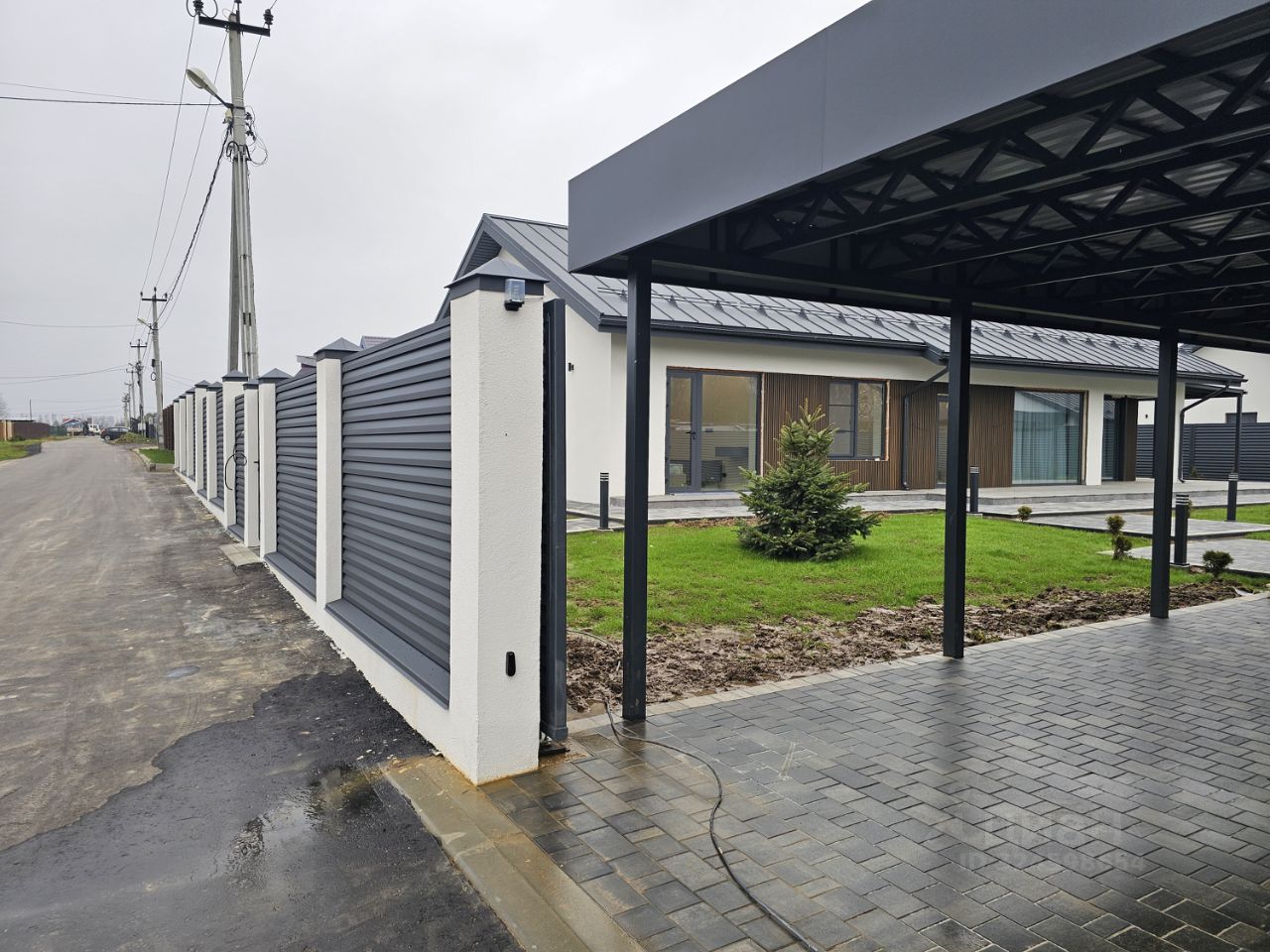 Общая площадь дома составляет 150 квадратных метров. Здесь есть все необходимое для комфортного проживания: просторная кухня-гостиная, три спальни, два санузла, гардеробная комната, сауна, постирочная и веранда. Интерьер выполнен в современном стиле с использованием высококачественных материалов.