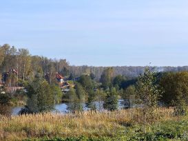 Участок на берегу реки Никажель в новом современной коттеджном посёлке имеющим свой песчаный пляж. Окружен лесным массивом.