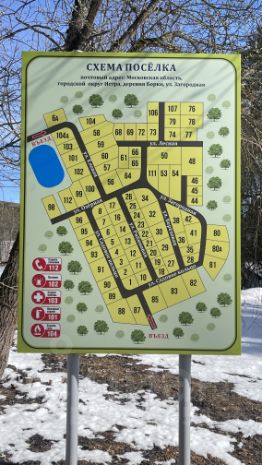 Удобный съезд с Новорижского шоссе, через живописный лес и водоём с утками.