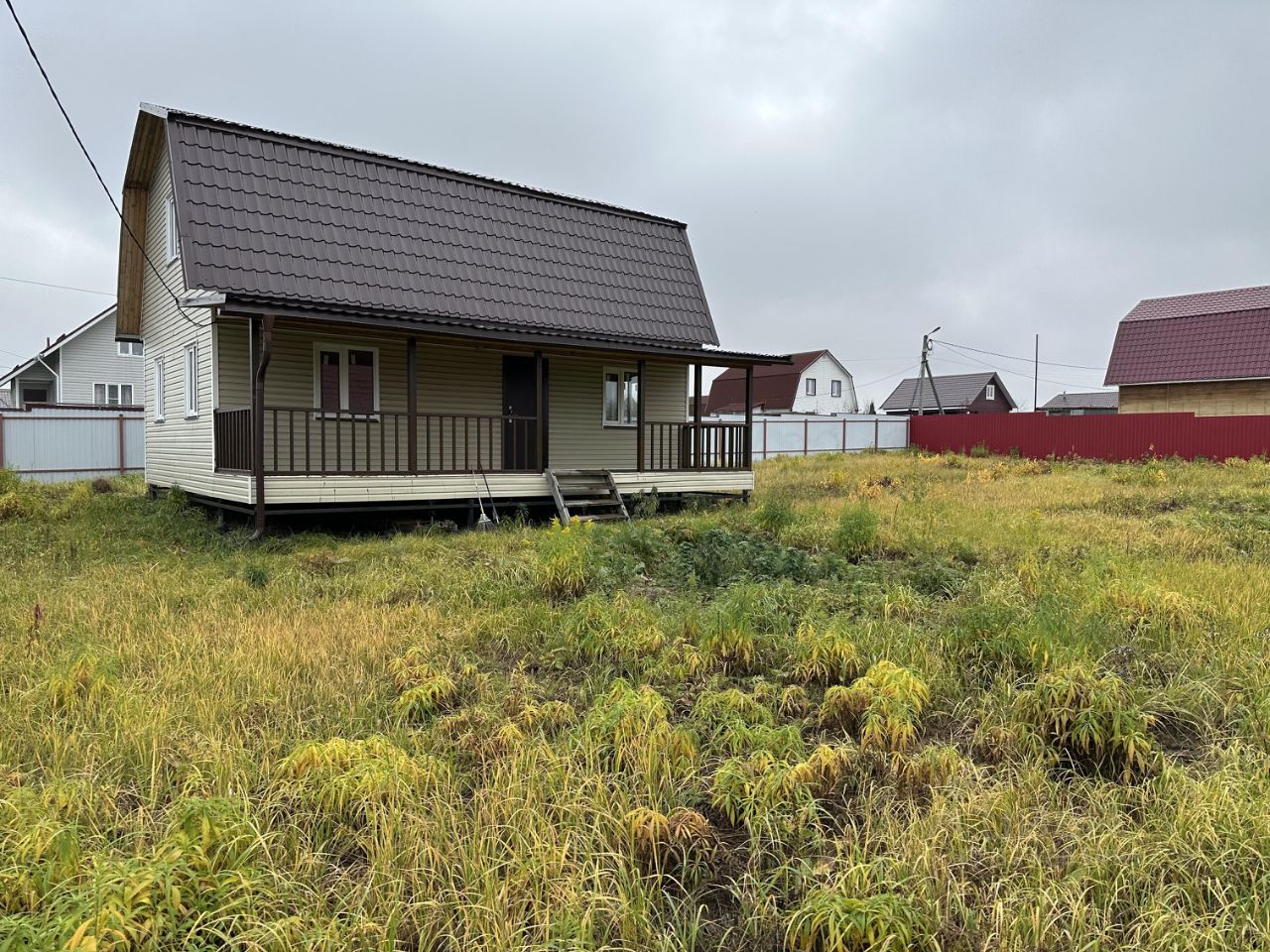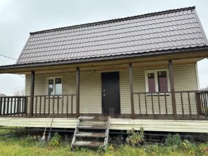 Построен из деревянного каркаса, внутри утеплен, сверху облицован сайдингом. Металлический фундамент с обвязкой. Крыша из металлочерепицы. Открытая большая терраса, хорошая входная дверь, внутри все комнаты обшиты вагонкой, стеклопакеты, розетки и выключатели. Заезжай и живи.