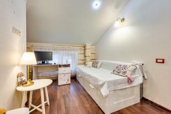 Около домовое пространство: большая крытая веранда 45 м2 (данная площадь не входит в общий метраж дома), есть возможность увеличить площадь дома за счет веранды.