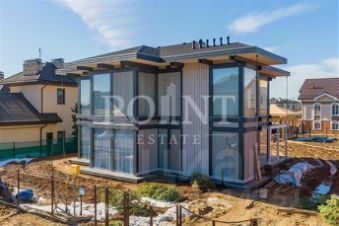 Лот: 91474. Двухэтажный загородный дом площадью 330 кв.м в стиле фахверк под финишную отделку (White box) построен на участке правильной формы 12 соток в охраняемом коттеджном поселке "Новорижский (Покровское)" с огромным парком с озером. Планировкой предусмотрено размещение на первом этаже гостиной, совмещенной с кухней и обеденной зоной, двух спален, санузла, гардеробной, постирочной, котельной, террасы. Второй этаж займут три спальни, одна из которых с гардеробной и санузлом, санузел, холл, гардеробная, балкон. На участке имеется парковка для двух автомобилей. На территории поселка есть озеро, спортивные площадки, обустроенные прогулочные зоны, гостевая парковка, магазины, неподалеку протекает река. Кроме того, жители пользоваться развитой инфраструктурой соседних поселков ("Гринфилд", "Миллениум-парк", "Риверсайд").