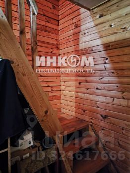 Деревянный на ленточном фундаменте. Три комнаты, одна на первом этаже, две - на втором.