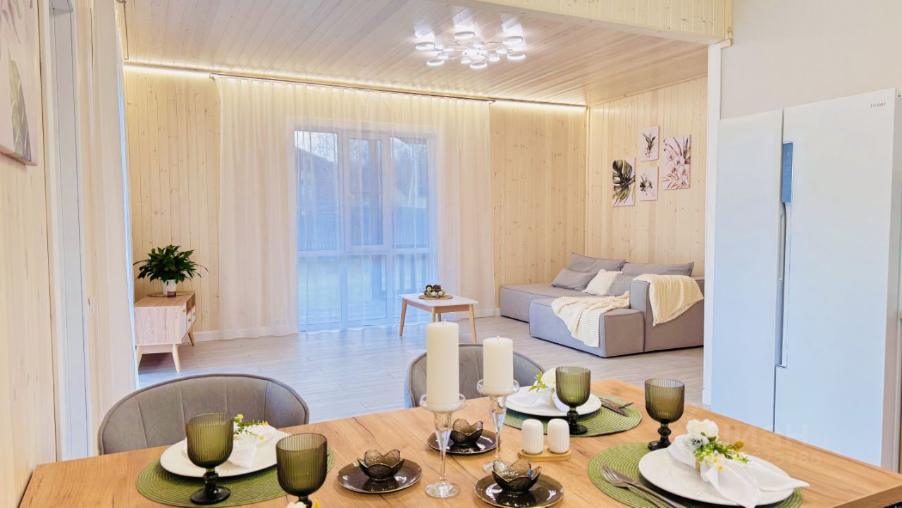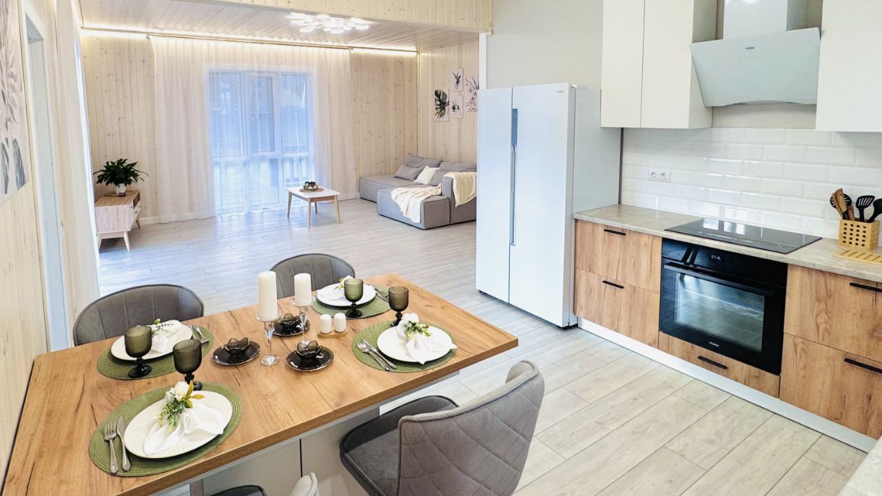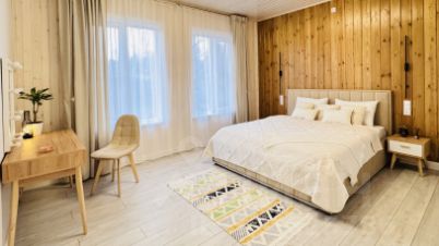 Спальня, кухня, гостиная, санузлы, прихожая полностью оборудованы, есть вся необходимая мебель. Дом готов к проживанию.