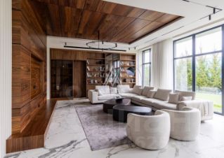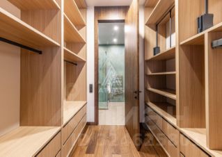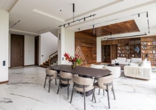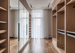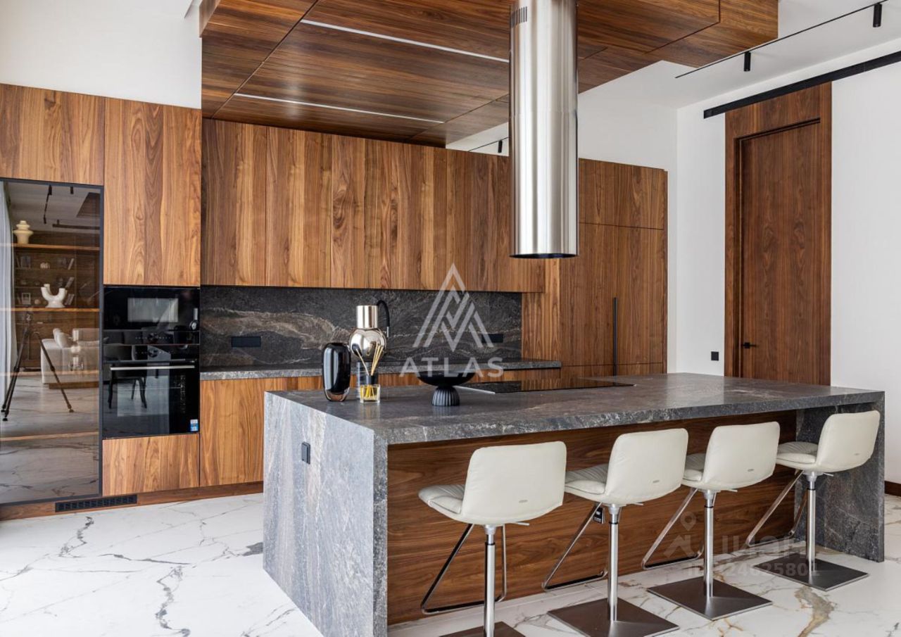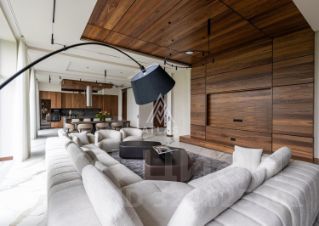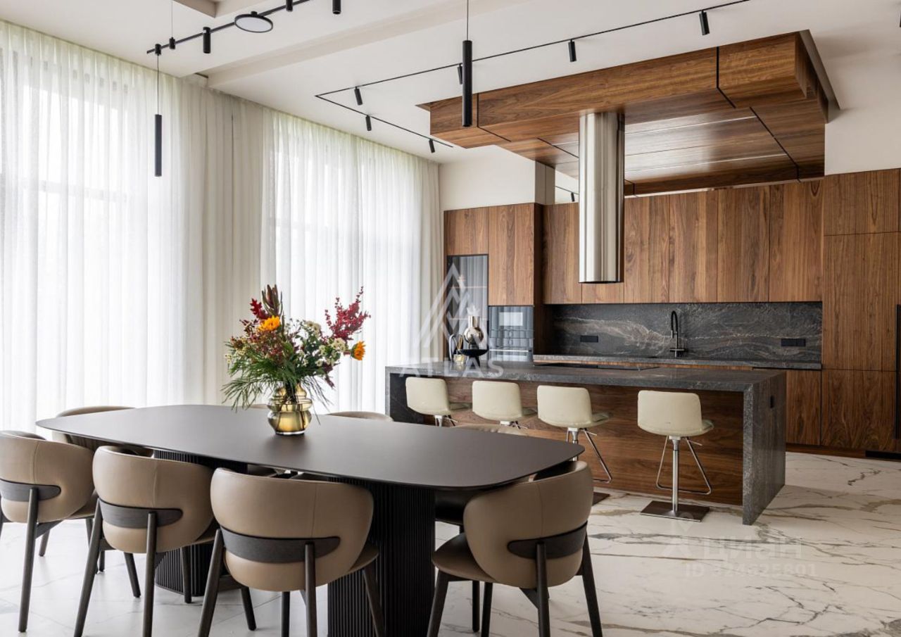 В интерьерах доминируют натуральные оттенки: древесные фактуры, мягкие тактильные поверхности, аккуратные вертикальные панели, визуальные акценты в виде графичных светильников и встроенных элементов.