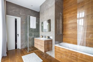 В Новый год с новым домом. Индивидуальный проект в стиле Райта. Формат - заезжай и живи. Все центральные коммуникации. Построен по всем современным технологиям загородного домостроения. Функциональные планировки. Энергоэффективность и максимальная естественная освещенность. Фундамент монолитная плита с утеплением. Стены - крупноформатный поризованный кирпич двойной кладки с утеплением. Фасад - декоративная штукатурка с отделкой клинкерной плиткой. Кровля - мягкая черепица Tegola. Установлены высоко качественные оконные системы витражного типа фирмы REHAU С напольными конвекторами. Дом по проекту 270 кв. метров в двух уровнях жилого пространства. Высота потолков 3,5 метра. На первом этаже просторная входная группа, переходящая в гостиную и кухню-столовую, оборудованную новой мебелью и бытовой техникой. В кухонной зоне есть отдельное помещение для хранения. Также на первом этаже есть большая спальня, туалетная комната с душевой кабиной, гардеробная и котельная. Оригинальная и стильная лестница ведёт на второй этаж, где расположены 4 спальни, в том числе мастер-спальня с гардеробной и ванной комнатой с витражным окном. Есть ещё одна общая ванная. В Доме смонтирована система конционирования. На первом этаже теплые водяные полы. Дом укомплектован новой мебелью, элементами декора и современной системой освещения с мастер -выключателей на входе. Дом расположен на ровном участке правильной по рельефу на возвышенности внутри жилой застройки. На участке выложен рулонный газон и высажены хвойные декоративные растения. По контуру дома выполнена дренажная система. Отопление в доме - газовый котёл от магистрального газа. Все инженерные системы подключены. Стильный забор. Парковка на брусчатке внутри участка на два авто и дополнительная перед фасадным забором. Выполнено уличное освещение. Новогодняя ёлка высажена на участке. Осталось повесить гирдянду. Дом расположен в посёлке с давно сложившейся зас тройкой. На вьезде контроль доступа. Все центральные коммуникации. Комфортные поселковые платежи. Вокруг лесная зона. До города Истра со всей инфраструктурой 10 минут на автомобиле. Есть удобный выезд на ЦКАД.