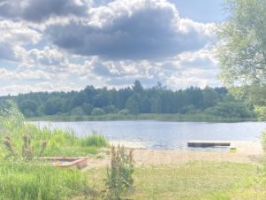 Отличное место в окружении лесов, свой выход к озеру с оборудованным пляжем, детские и спортивные площадки, футбольное поле.