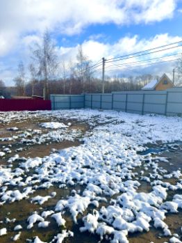 Участок площадью 10 соток ровный, имеет правильную форму, огорожен, забор из профлиста, хорошо выполнена въездная группа откатные ворота, калитка.