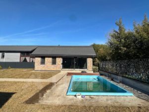 Бассейн подогревом и релакс-зоной и баня на участке - отдельный предмет гордости - наполнят удовольствием жизнь будущих хозяев.