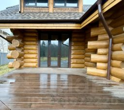 Площадь дома 330 кв.м. с двумя террасами, выполненными из лиственницы.