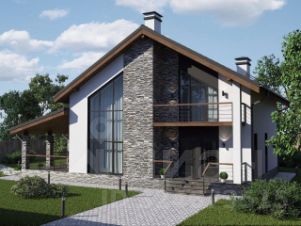 — 2 этаж (84 м²): мастер-спальня 22 м², детская 20 м², гардеробная 10 м², санузел, холл со вторым светом 15 м²