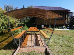 - Ухоженная территория: плодовые деревья (яблони, груши), ягодные кустарники, цветущие клумбы.