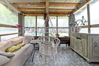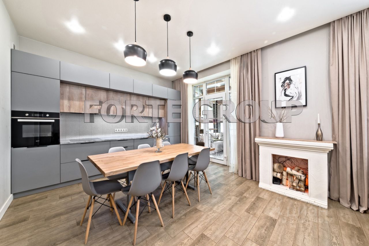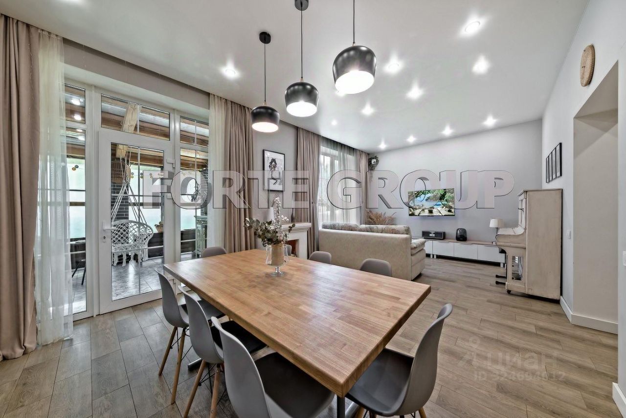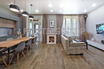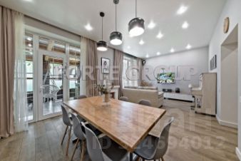 - большая гостиная с дизайнерской кухней (духовой шкаф, вытяжка, плита, посудомоечная машина - все встроено), выход на веранду, а также лаунж-зона с телевизором.
