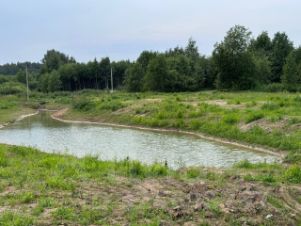 Природные особенности: территория окружена смешанным лесом, а уникальным преимуществом является возможность приобретения участка с собственным выходом к пруду.