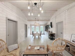 В интерьере дома используется электрическая ретро проводка, которая очень гармонично вписывается в стиль этого дома.
