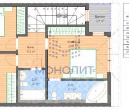 * на 2 этаже 1 мастер - спальня с сан узлом, 2 спальни, сан узел общий, балкон,
