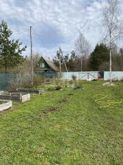 Участок правильной прямоугольной формы, огороженный забором из профнастила. На участке расположен домик, бытовка, летний душ, туалет.