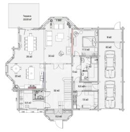 гостиная, столовая- кухня, спальня, санузел с душевой и сауной, вместительная прихожая, второй санузел и отдельная постирочно- гладильная комната.