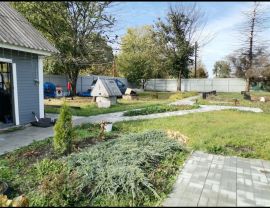 По всему участку развёрнут хороший плодоносящий яблоневый сад, декоративные цветники и ягодные кустарники (малина, смородина, калина, черноплодная рябина, жимолость).