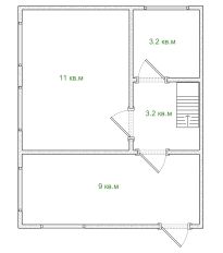 На первом этаже три комнаты: 11 кв.м., 9 кв.м., 3.2 кв.м., второй этаж мансардный 15 кв.м.