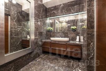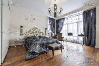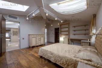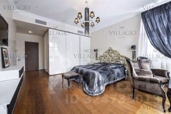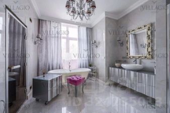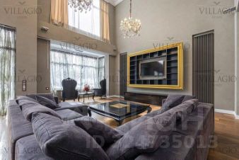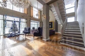 Трехэтажный коттедж с отделкой, площадью 900 квадратных метров, расположен на земельном участке размером 43 сотки.