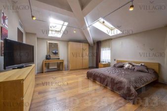 На первом этаже расположена гостиная со вторым светом, кухня-столовая, кабинет, имеется комната для персонала.