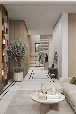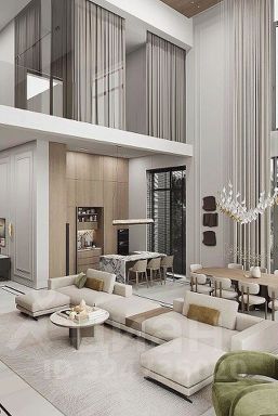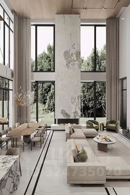 Высокие потолки и второй свет создают ощущение простора и свободы, а панорамное остекление наполняет интерьер естественным светом и создаёт ощущение единства с окружающей природой.