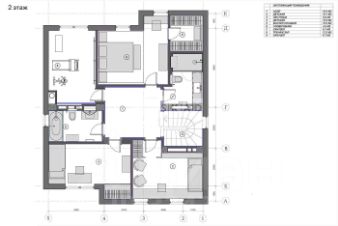 2 этаж: мастер-спальня со своей гардеробной, 2 спальни, 2 санузла, спортивный зал либо кабинет.