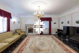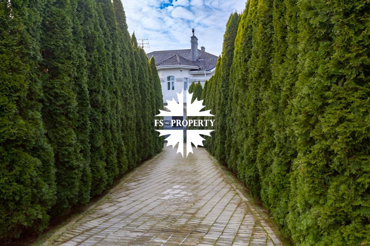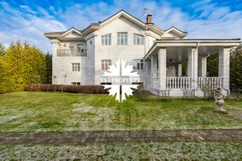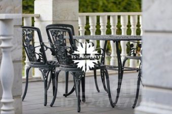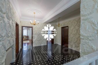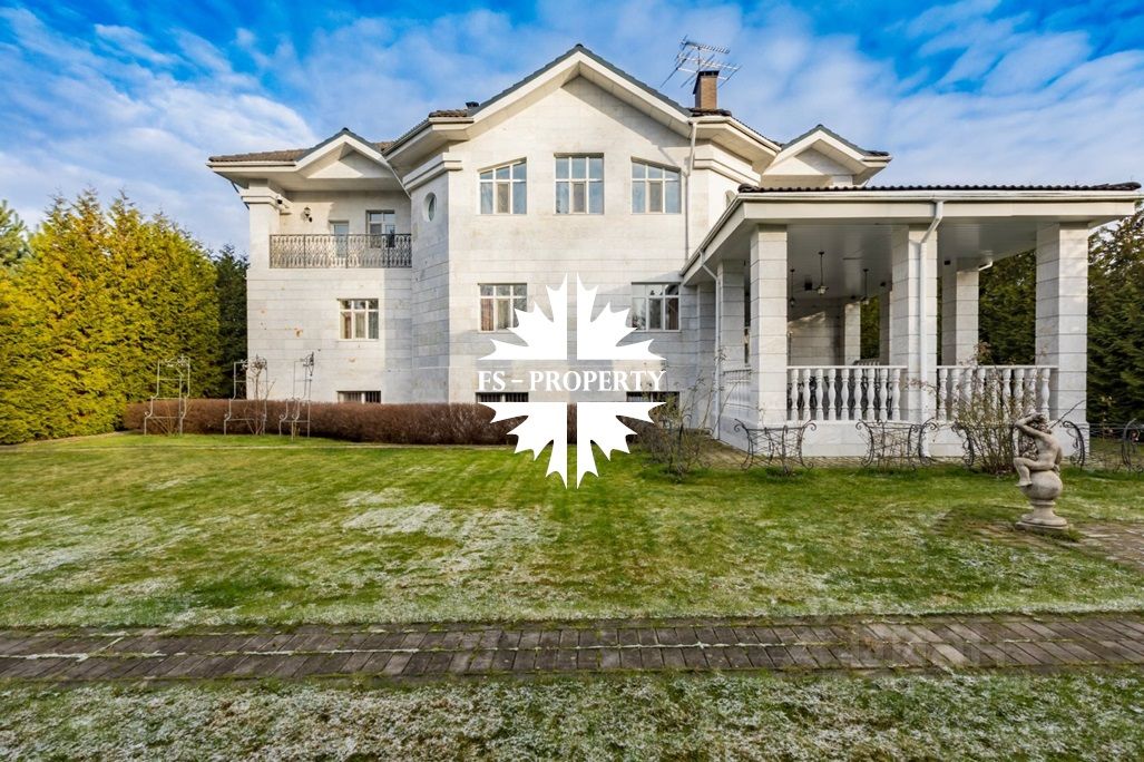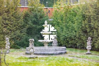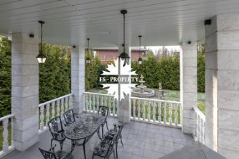 На просторном участке 28 соток расположилась элегантная усадьба площадью 640 квадратных метров с черепичной крышей и изысканной мраморной облицовкой. Дом завораживает своим особенным шармом: