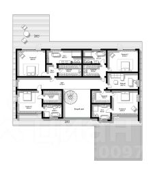 Четыре спальни, каждая со своей гардеробной и санузлом, кабинет, холл, две террасы.