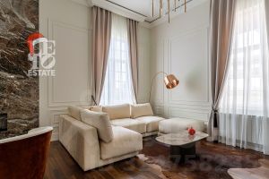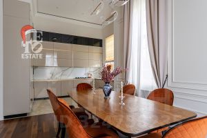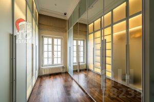 В отделке использованы дорогостоящие и натуральные материалы, напольное покрытие — паркет.