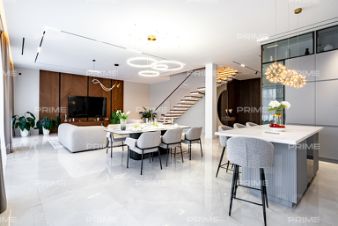 Панорамное остекление наполняет пространство естественным светом, подчеркивая элегантность минималистичного дизайна. Высокие потолки, натуральные материалы, премиальная отделка класса DeLuxe - здесь каждый элемент подобран с безупречным вкусом. В доме пять спален, каждая с отдельной гардеробной и ванной комнатой, кабинет для работы, просторная гостиная и большая терраса, где можно встречать рассветы с чашкой кофе или проводить теплые семейные ужины.
