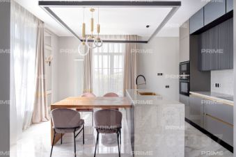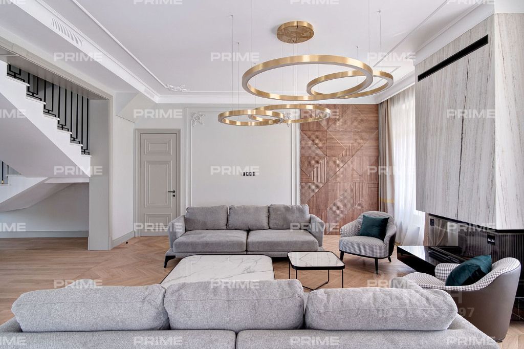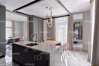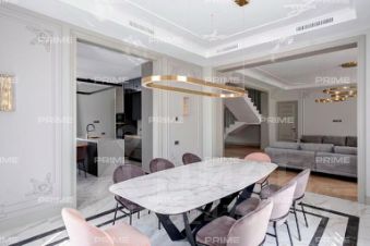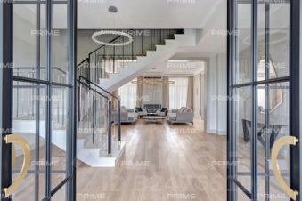 Потрясающий интерьер исполнен из высококачественных материалов и дополнен красивой мебелью. Фасад с колоннами в классическом стиле выглядит благородно и торжественно. Благодаря панорамному остеклению внутри дома всегда много естественного света, что позволяет оптимально использовать электроэнергию.