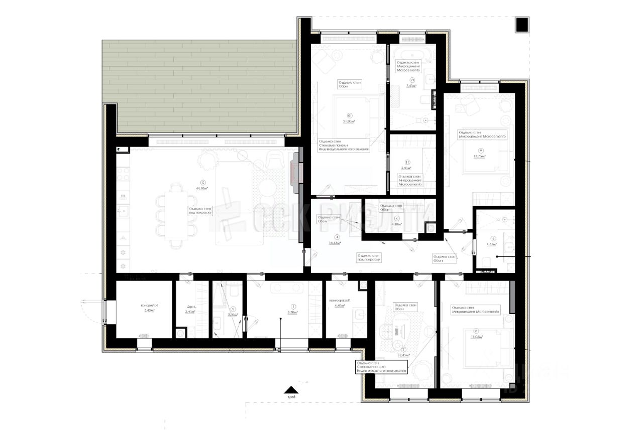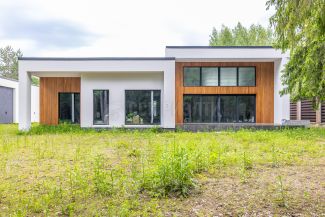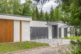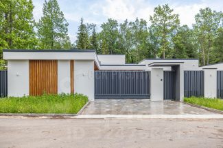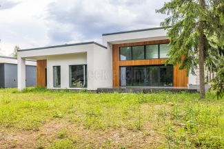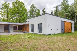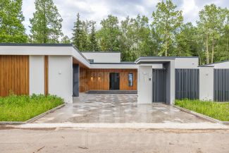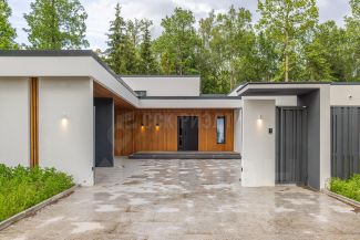 id:161002. Продаётся новый современный одноэтажный дом c отделкой WHITE BOX в закрытом поселке примыкающий к лесу! Общая площадь с учётом террасы: 223,5м2. О доме: Дом 1-этажный площадью 188 м2 (по техплану), парковка под навесом 75 м2, терраса 35 м2. Функциональная планировка. Дом условно разделен на 3 зоны: -Кухня гостиная 50 м2 с потолком 5,4 м (у кухни есть кладовка 3,2 м2) из Кухни-Гостиной можно попасть на террасу. -2 детские спальни -1 кабинет ( можно сделать гостевую спальню) -1 мастер-спальня со своим санузлом и гардеробом (весь блок мастер спальни отделен толстой стеной 510 мм от остальных комнат). Путь до спален лежит через коридор в 20 м2. -техническая зона состоит из прихожей, котельной, постирочной, санузла, кладовки. ТЕХНИЧЕСКИЕ ХАРАКТЕРИСТИКИ: - фундамент бетонная лента 510х1800 мм, связанная монолитной плитой 250 мм (арматура в сечении 12/14). -Перекрытия на всех уровнях дома монолитная плита 200 мм -Стены из керамического кирпича 2.1НФ ЛСР. Внешние стены имеют толщину 510 мм, внутренние перегородки толщиной 120\380 мм. Над всеми стенами сделан ж/б армопояс. -Кровля: Облегченная кровельная система по основанию из монолитных железобетонных плит, с кровельным ковром из полимерной мембраны, клиновидной разуклонкой и утеплением из экструзионного пенополистирола. ПВХ мембрана Bauder Thermofol толщиной 2.0 ( пр-во Германия) + электропроводящий слой Контролит. -Окна: Профиль Аlutech w-72 с двухсторонним матовым окрасом темно-серого цвета 7016 и 9001 , стекелопакеты закаленные с мультинапылением толщиной 8мм. Входная дверь PorttaLLe с двойным терморазрывом. Электронный замок. -Фасад: отделка комбинированная, многокомпонентная. 1."мокрый фасад" оштукатурен Betek BETEKSILAN TEXTURE (Силиконовая текстурная краска) 2. Планкен Лиственница -Сделано освещение фасада, забора и парковочной зоны. -Крыльцо и терраса с отделкой керамогранитом. ИНЖЕНЕРНЫЕ СИСТЕМЫ: -Электричество 20 Квт заведено в дом. Все силовые кабели ГОСТ . Слаботочка под камеры, и домофон. Предусмотрен мощный кабель для зарядки авто. Все розетки и выключатели сделаны согласно расстановки мебели на плане. -Центральное газоснабжение. Газовый котел Viessmann Vitopend -100+ резервный электрический. Бойлер (Raflex) косвенного нагрева на 150л. Отопление собрано через коллектор с насосной группой обвязка в котельной собрана на нержавейке. По всему полу трубы теплого пола Rehau 16 мм. -Биостанция глубокой очистки Астра Юнилос 6 со сбросом в поселковую канализацию. -Водоснабжение с помощью собственной артезианской скважины глубиной 115 метров. -Ливневые колодцы с насосом и сбросом в поселковую канализацию. -Интернет, заведенный в дом. ВНУТРЕНИЕ РАБОТЫ: -Межкомнатные стены из керамического кирпича 2.1НФ ЛСР оштукатурены Knauf Rodbant. -Стяжка пола -Выводы труб ХВС,ГВС, канализации согласно проекту дома. -В доме уже установлены инсталляции WasserKraft. Также установлена вся сантехника, сделаны все закладные WasserKraft. - Конвекторы Varmann, верхняя решетка бронзового цвета. - Комплект центрального кондиционирования Hitachi внешний и внутренние блоки. ЛЕСНОЙ участок 12,5 соток примыкающей к лесу: -Забор по фасадной части участка из металла выполненного по индивидуальному проекту, окрашен порошковой краской в темно-серый цвет, с электрозамком на калитке с бетонной лентой 500х600 мм и монолитными колоннами. -Видеонаблюдение по периметру участка -Въездная группа из уличного керамогранита. -Навес на 2 автомобиля
