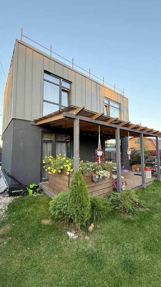 Коттедж построен в 2021 году. Построен по современной шведской каркасной технологии (*не сэндвич-панели). Деревянный каркас, обработанный огнебиозащитным промышленным методом. Утеплитель стен фирмы Knauf 250 мм с перекрытием мостиков холода, крыша 300 мм.